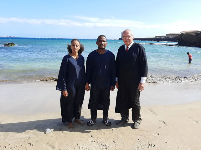 Dos almas más, una hermana y un hermano en la fe de Jesús, fueron bautizadas en Cabo Verde, informó el hermano Nestor Loaiza a través de una sesión de fotos del evento el 5 de febrero de 2021. No se mencionaron los nombres de los dos miembros de la iglesia recién aceptados. quizás por motivos de protección de datos. Ayer, 17 de febrero de 2021, la temperatura en Cabo Verde era de 22 grados Celsius, mientras que la temperatura esperada en el pueblo de Oymyakon, Yakutia, Rusia, por ejemplo, se hizo realidad: menos 33 grados Celsius hoy, el 18 de febrero de 2021.