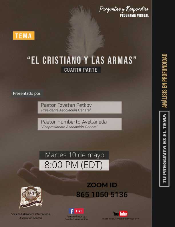 Programa de preguntas y respuestas – martes 10 de mayo de 2022 El cristiano y las armas, cuarta parte Descargar Diapositivas en PDF Por Michael M.|2022-05-16T02:34:11-04:00mayo 5th, 2022|Noticias SMI|Sin comentarios Share This Story, Choose Your Platform! FacebookXRedditLinkedInWhatsAppTumblrPinterestVkCorreo electrónico Artículos relacionados