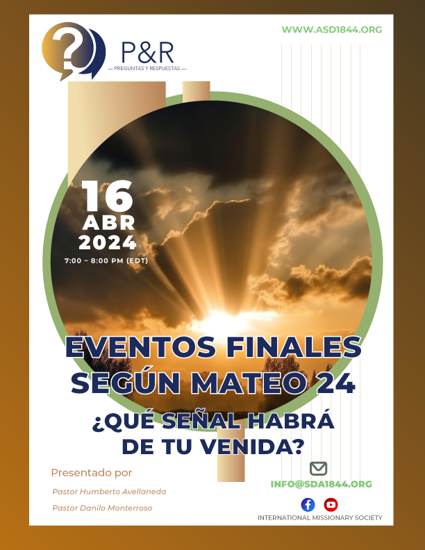 Programa de preguntas y respuestas – martes 16 de abril de 2024 "EVENTOS FINALES SEGÚN MATEO 24 ¿QUÉ SEÑAL HABRÁ DE TU VENIDA?" Por Omar M.|2024-04-17T10:49:13-04:00abril 17th, 2024|Noticias SMI|Sin comentarios Share This Story, Choose Your Platform! FacebookXRedditLinkedInWhatsAppTumblrPinterestVkCorreo electrónico Artículos relacionados