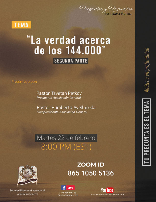 Programa de preguntas y respuestas – martes 22 de febrero de 2022 La verdad acerca de los 144.000, segunda parte Por Michael M.|2022-02-20T01:34:15-05:00febrero 20th, 2022|Noticias SMI|Sin comentarios Share This Story, Choose Your Platform! FacebookXRedditLinkedInWhatsAppTumblrPinterestVkCorreo electrónico Artículos relacionados