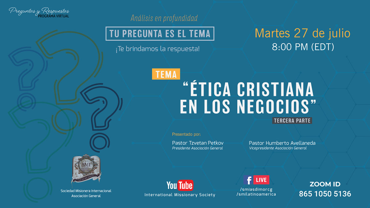 Programa de preguntas y respuestas – martes 27 de julio de 2021 Ética cristiana en los negocios, tercera parte Por Michael M.|2021-07-23T12:14:58-04:00julio 23rd, 2021|Noticias SMI|Sin comentarios Share This Story, Choose Your Platform! FacebookXRedditLinkedInWhatsAppTumblrPinterestVkCorreo electrónico Artículos relacionados