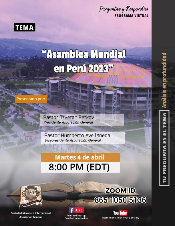Programa de preguntas y respuestas – martes 4 de abril de 2023 Asamblea Mundial en Perú 2023 Por Michael M.|2023-06-16T11:34:10-04:00marzo 30th, 2023|Noticias SMI|Sin comentarios Share This Story, Choose Your Platform! FacebookXRedditLinkedInWhatsAppTumblrPinterestVkCorreo electrónico Artículos relacionados