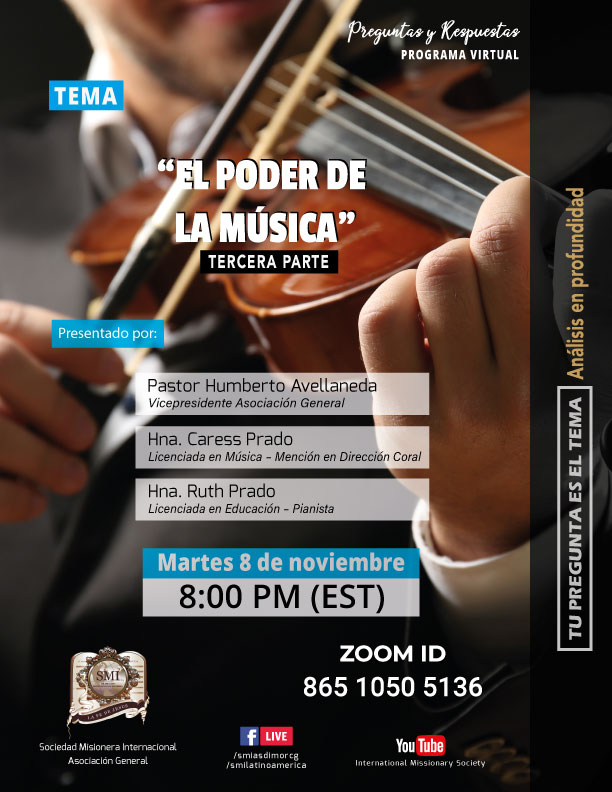 Programa de preguntas y respuestas – martes 8 de noviembre de 2022 El poder de la música, tercera parte Por Michael M.|2022-11-06T18:54:05-05:00noviembre 6th, 2022|Noticias SMI|Sin comentarios Share This Story, Choose Your Platform! FacebookXRedditLinkedInWhatsAppTumblrPinterestVkCorreo electrónico Artículos relacionados
