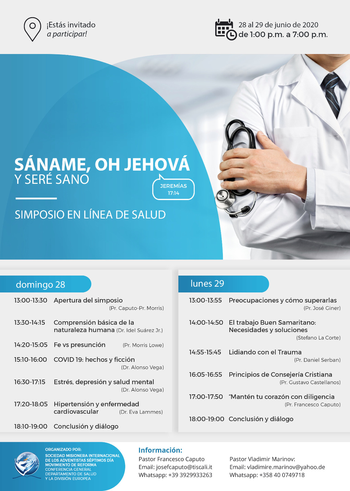 Estáis invitados a participar del primer simposio de salud en línea organizado por el departamento de salud junto con la División Europea.