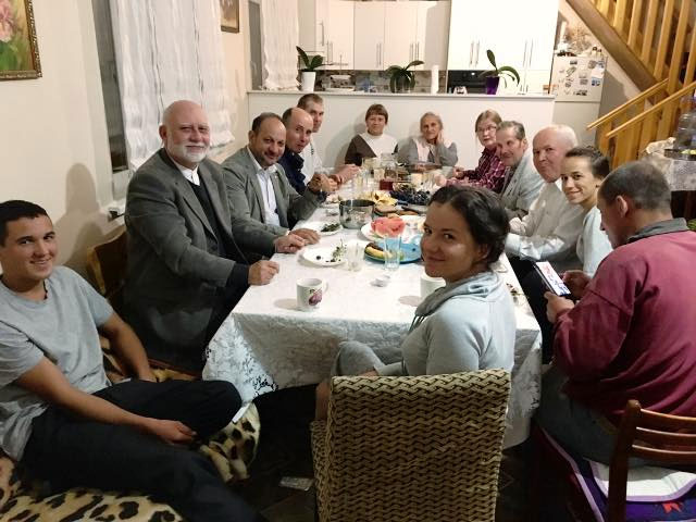 El pastor Tzvetan Petkov, el pastor Franco Caputo y el pastor Vladimire Marinov en visita a la familia del pastor Alexandar Zalozniy en Ucrania; una foto del archivo personal del pastor Franco Caputo en Facebook.