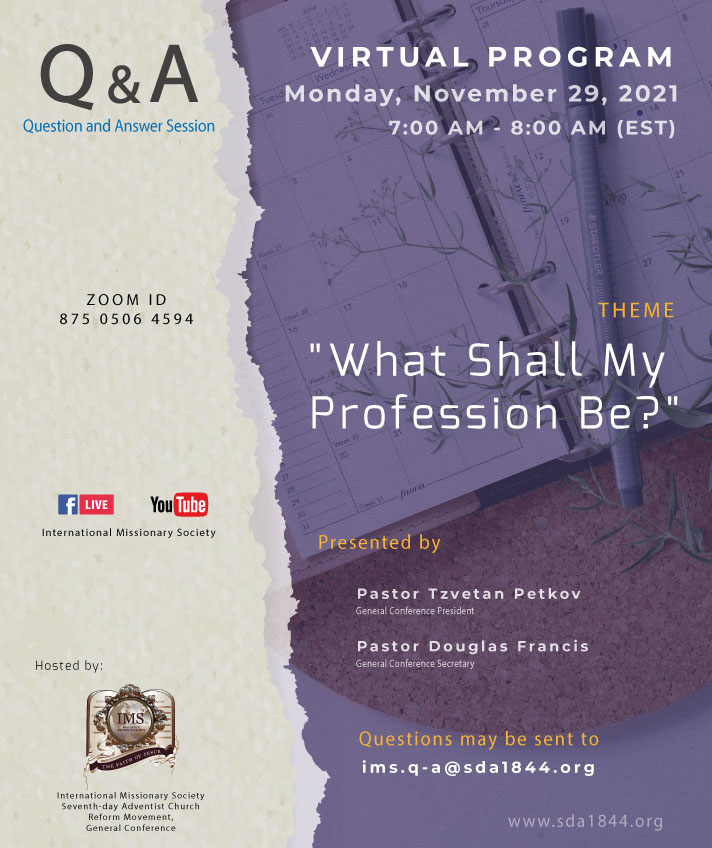 Virtual Program – Monday, November 29, 2021 Zoom ID: 875 0506 4594 Q&A Session – What Shall My Profession Be