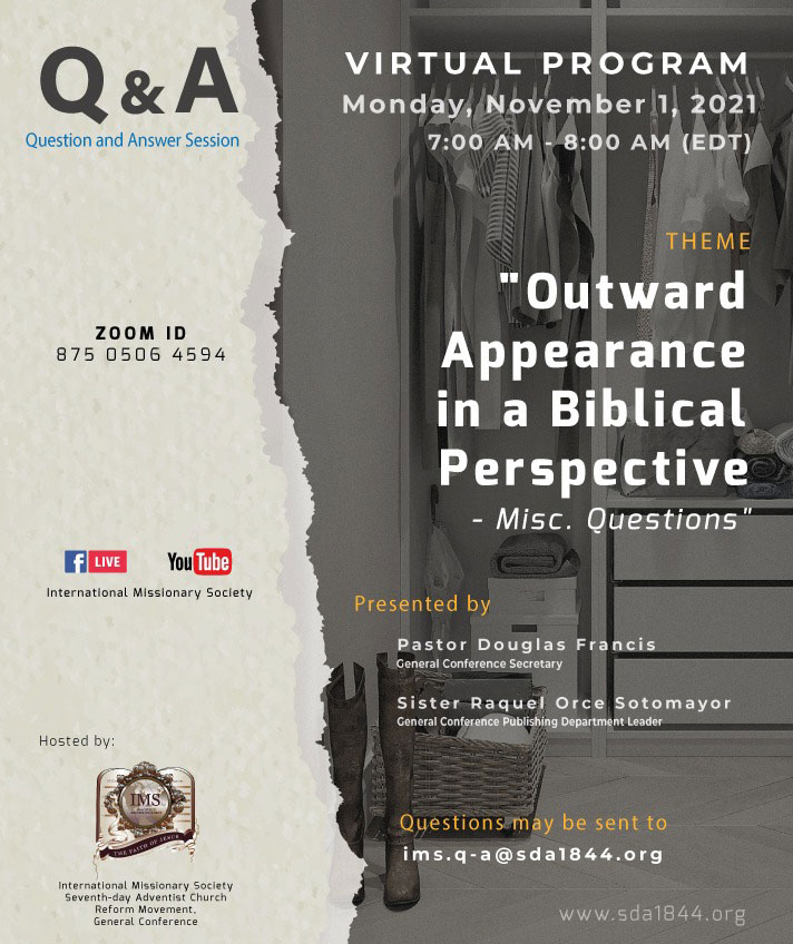 Virtual Program – Monday, November 8, 2021 Zoom ID: 875 0506 4594 Q&A Session – Outward Appearance in a [...]