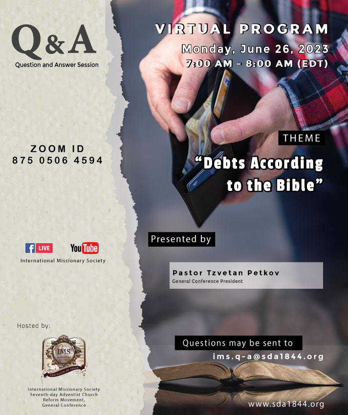 Virtual Program – Monday, June 26, 2023 Zoom ID: 875 0506 4594 Q&A Session – Debts According to the Bible