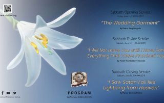 Sabbath Opening Service Friday, June 11, 7:00 PM (EDT) “The Wedding Garment” By Pastor Yony Delgado Translation: Sister Karola Kraenzmer [...]