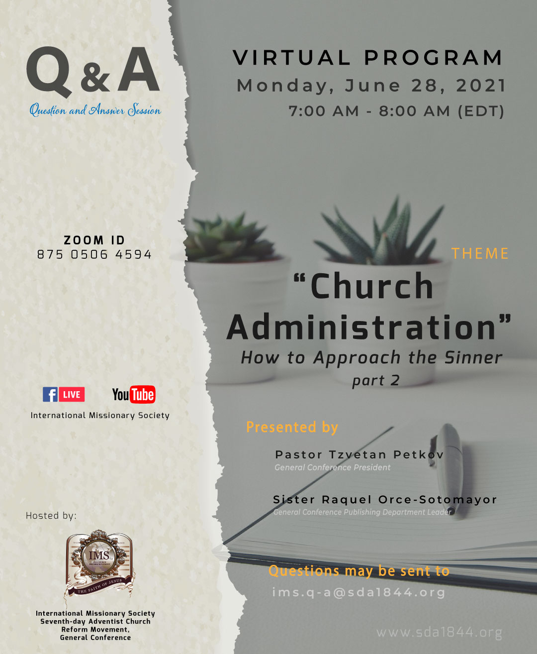Virtual Program – Monday, June 28, 2021 Zoom ID: 875 0506 4594 Webinar – Church Administration - How to [...]