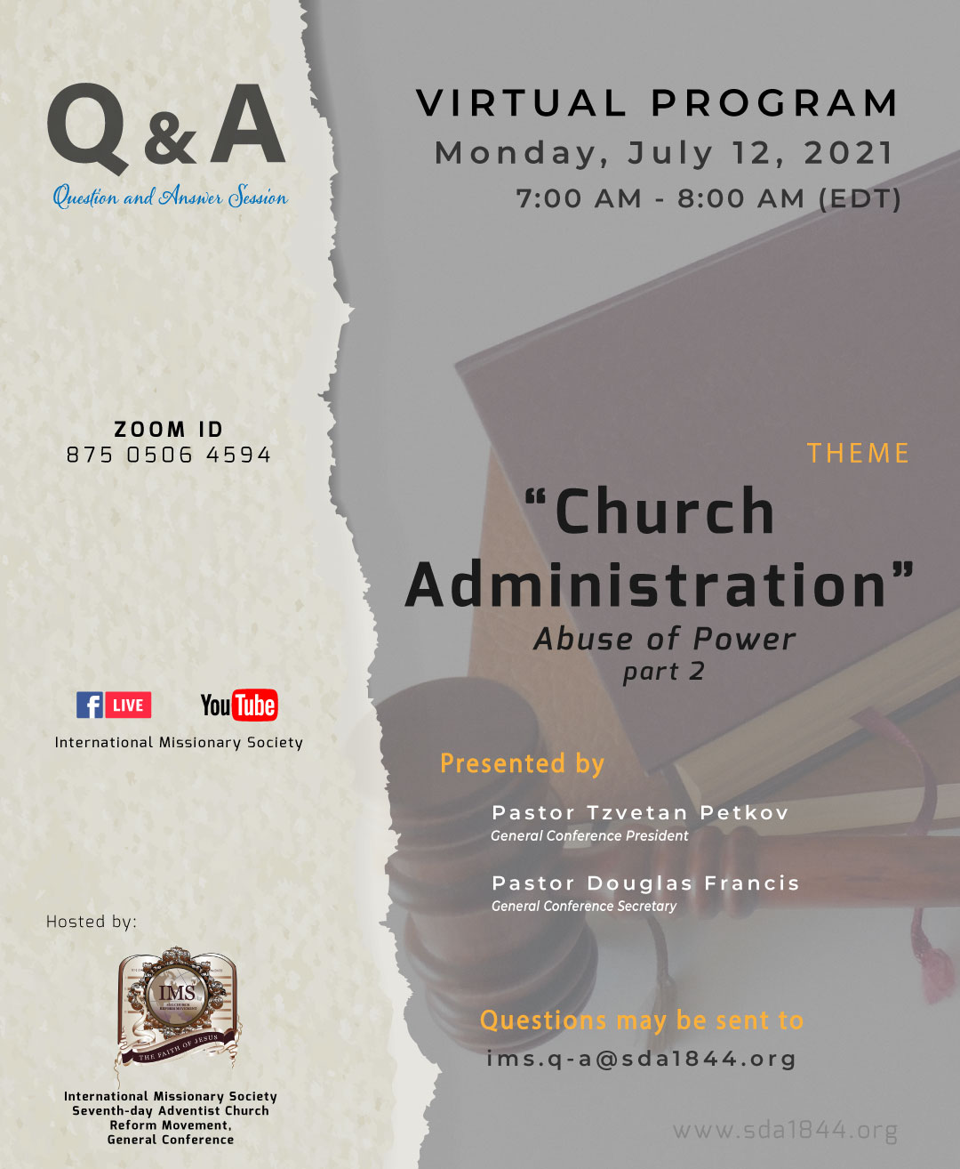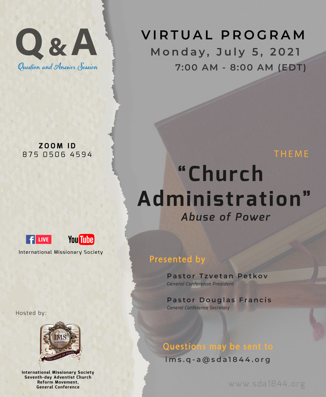Virtual Program – Monday, July 5, 2021 Zoom ID: 875 0506 4594 Webinar – Church Administration - Abuse of [...]