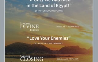 Sabbath Opening Service Friday, July 15, 7:00 PM (EDT) “Resist Not Him That Is Evil” By Pastor Yony Delgado [...]