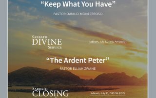 Sabbath Opening Service Friday, July 29, 7:00 PM (EDT) “Keep What You Have” Pastor Danilo Monterroso Translation: Sister Karola [...]