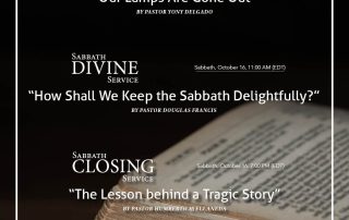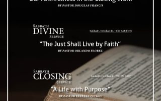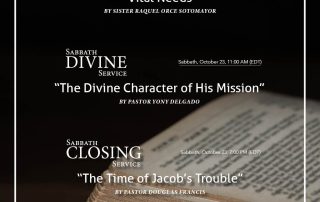 Sabbath Opening Service Friday, October 15, 7:00 PM (EDT) “Our Lamps Are Gone Out” By Pastor Yony Delgado Translation: Sister [...]