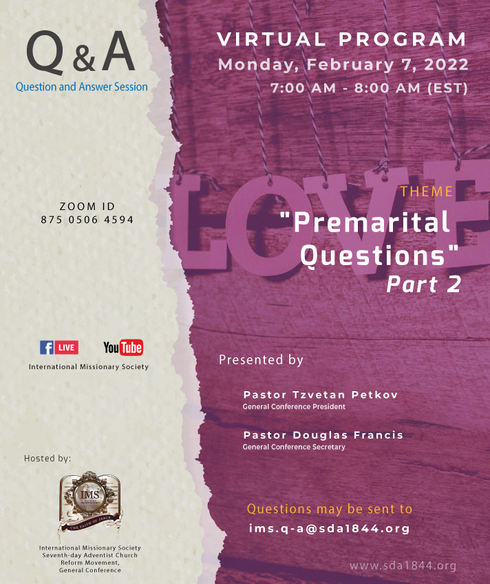 Virtual Program – Monday, February 7, 2022 Zoom ID: 875 0506 4594 Q&A Session – Premarital Questions - Part 2 [...]