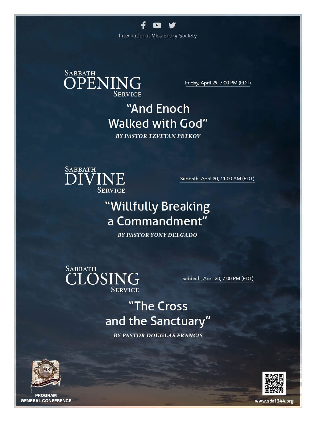 Sabbath, April 30, 7:00 PM (EDT)