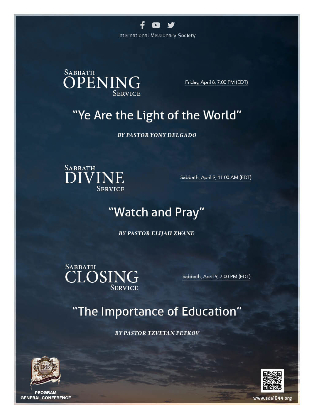 Sabbath, April 9, 7:00 PM (EDT)