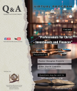 Q&A Session – Professionals for Christ - Investments and Finances Virtual Program – Monday, December 4, 2023 By Omar M.|2023-12-04T16:29:54-05:00December 4th, 2023|IMS News, Q&As|0 Comments Share This Story, Choose Your Platform! FacebookXRedditLinkedInWhatsAppTumblrPinterestVkEmail Related Posts