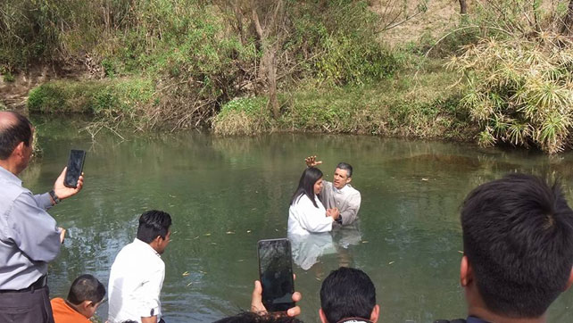 Pastor Danilo Monterroso during conducting a baptism; a photo from the personal archive of Pastor Danilo Monterroso on Facebook.
